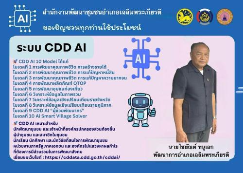สำนักงานพัฒนาชุมชนอำเภอเฉลิมพระเกียรติ จังหวัดนครศรีธรรมราช ประชาสัมพันธ์เชิญชวนทุกท่านใช้ประโยชน์ระบบ CDD AI