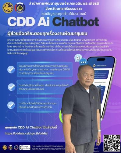 สำนักงานพัฒนาชุมชนอำเภอเฉลิมพระเกียรติ จังหวัดนครศรีธรรมราช ประชาสัมพันธ์เชิญชวนทุกท่านใช้ประโยชน์ระบบ CDD AI